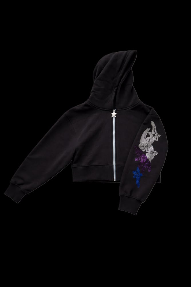 Loose Baggy fitting Zip up Rhinestone Gradient embellishments fits loose size down for tighter fit
